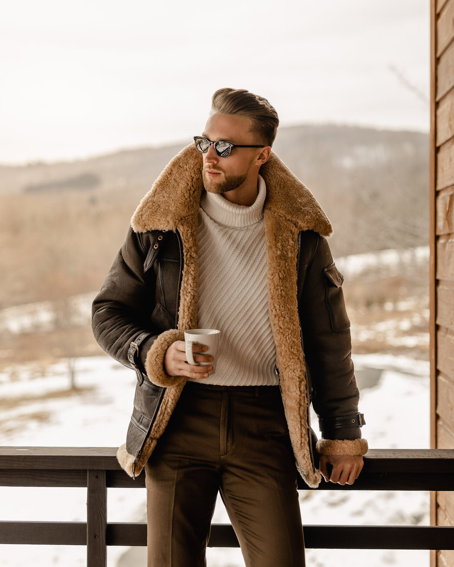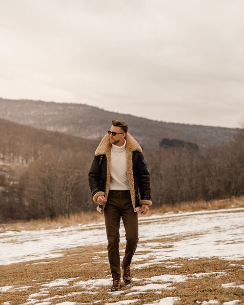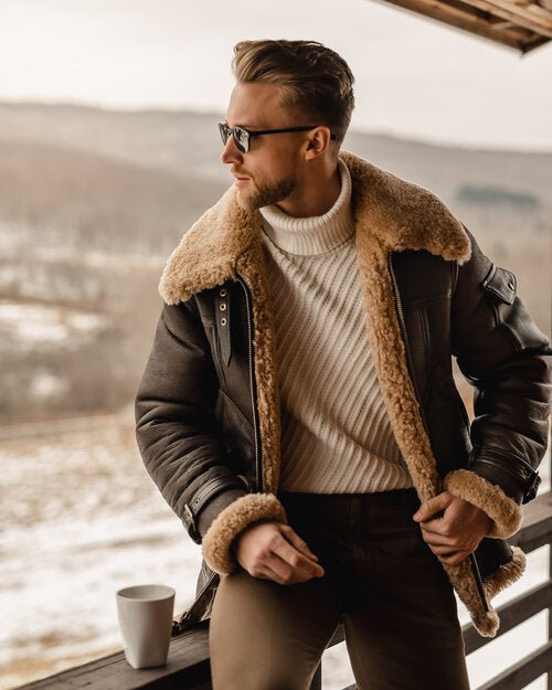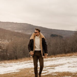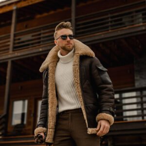 Be the first to review “Men’s Brown B3 Flying Aviator Shearling Leather Long Jacket Coat”